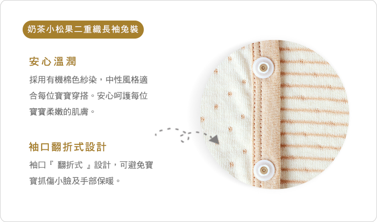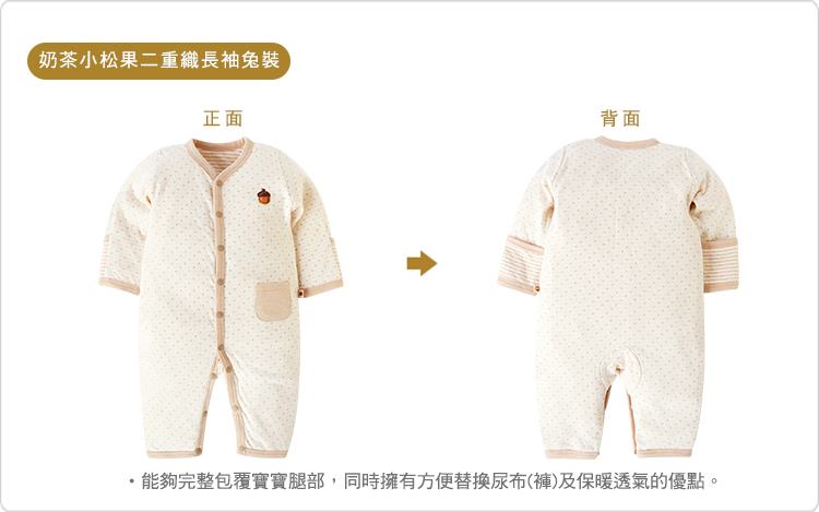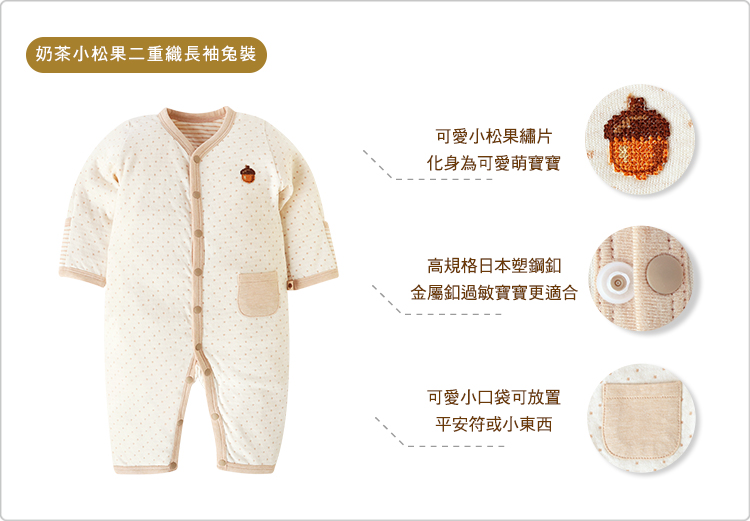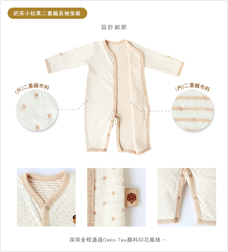 【SISSO有機棉】奶茶小松果二重織長袖兔裝 3M 6M 12M